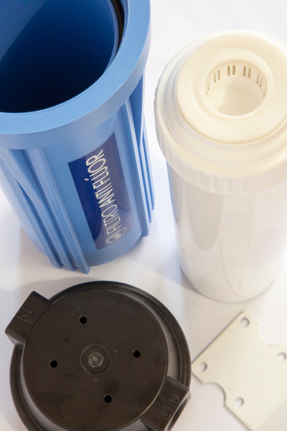 Filtro de agua para eliminar flúor del agua potable. Contiene zeolita procesada con carbón activado especial fabricado y certificado (NSF 61) en Estados Unidos para remoción de hasta 99% de flúor y 80% de arsénico y plomo. El medio filtrante se presenta en forma de gránulos duros de tamaño uniforme. El flúor se remueve por adsorción con el medio filtrante. La eficiencia del proceso depende del flujo y pH. Para mejores resultados, se recomienda limitar el flujo a 1-2 litros por minuto y el pH no menor a 5.5.